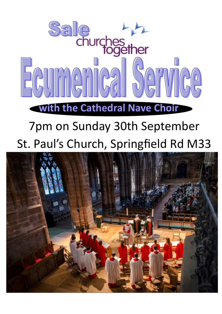 St. Paul’s Ecumenical Service with the Cathedral Nave Choir Next Published September 27, 2018 at 1240 × 1754 in Churches Together in Sale Share this: Click to share on X (Opens in new window) X Click to share on Facebook (Opens in new window) Facebook Click to email a link to a friend (Opens in new window) Email Click to share on Pinterest (Opens in new window) Pinterest Click to print (Opens in new window) Print