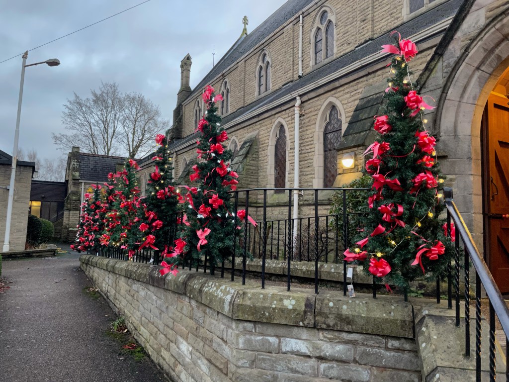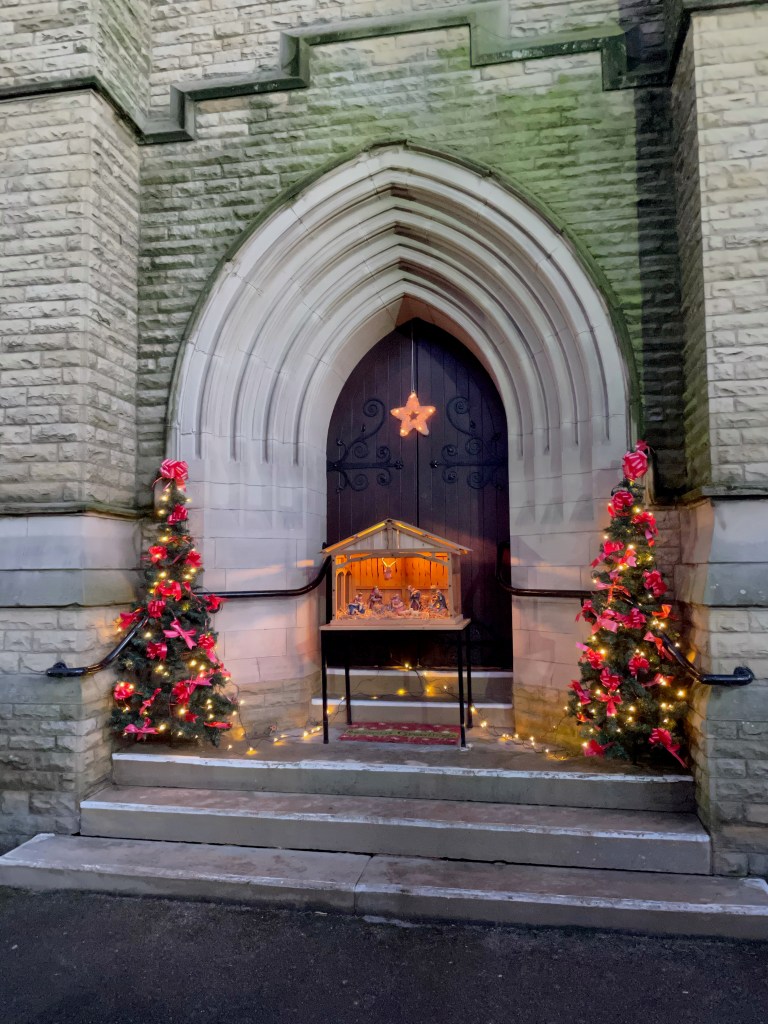 Because this year is so different at Christmas we have decorated the outside of the church with Christmas Trees and our Crib. All are welcome to walk past these on the way to the canal bank.