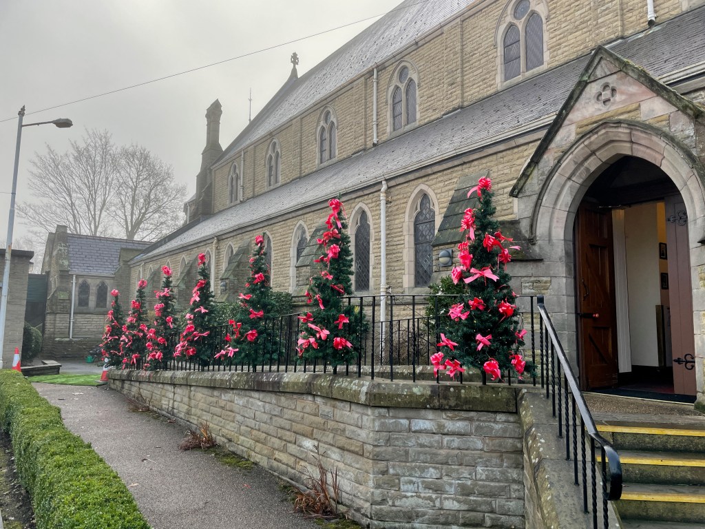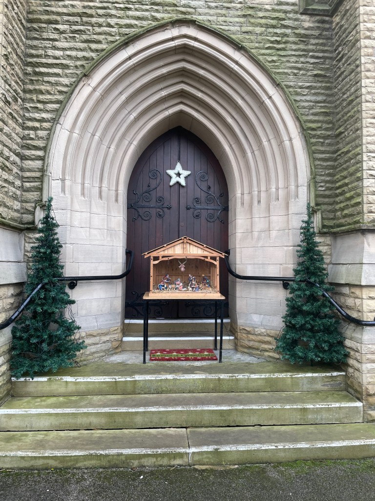 In preparation for Christmas the photos below show decorations which have been put up outside Church.