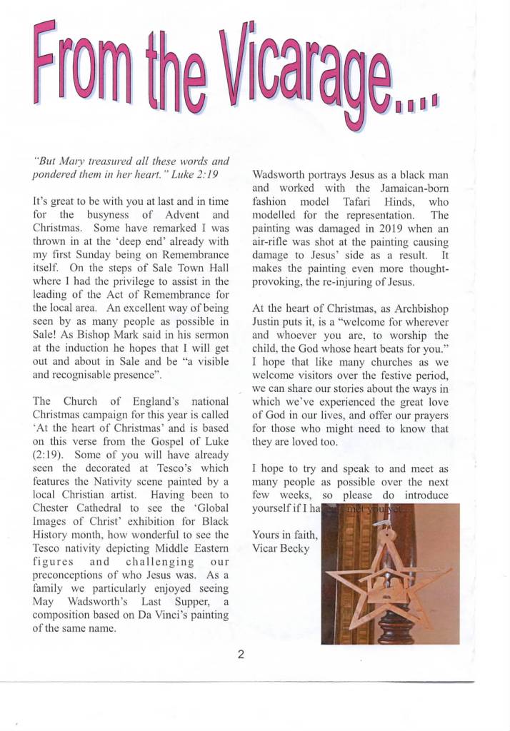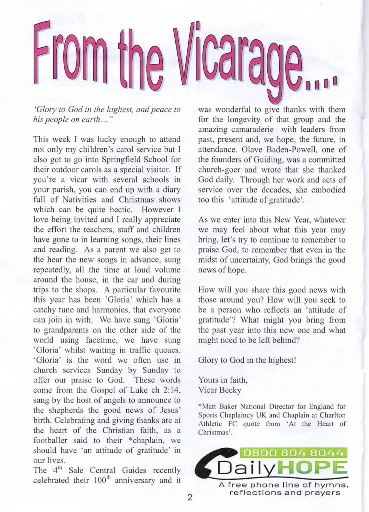The Vicar’s January letter is shown below together with links to two other pages from the January Parish News.