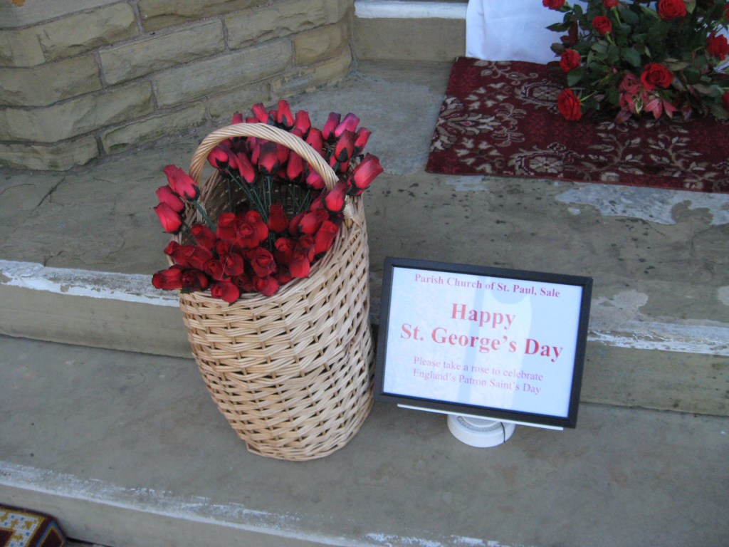 If you are passing the Church today please do take a red rose in celebration of our Country’s Patron Saints Day.