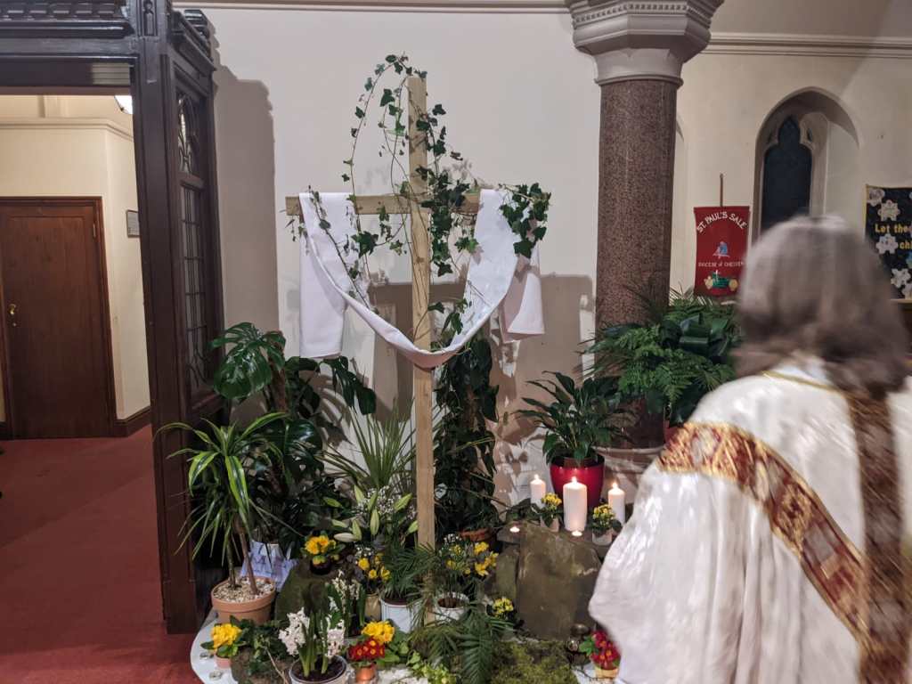 The slideshow below shows photos taken during the joyous Easter Sunday morning service. It was also announced that over £500 had been raised in aid of Ukraine during the last week.