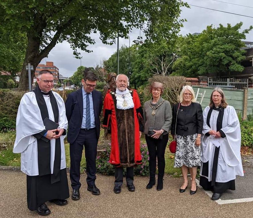 The morning service was attended by the Mayor of Greater Manchester, Andy Burnham, the Mayor of Trafford, Chris Boyes and the Archdeacon of Macclesfield, Ian Bishop.
