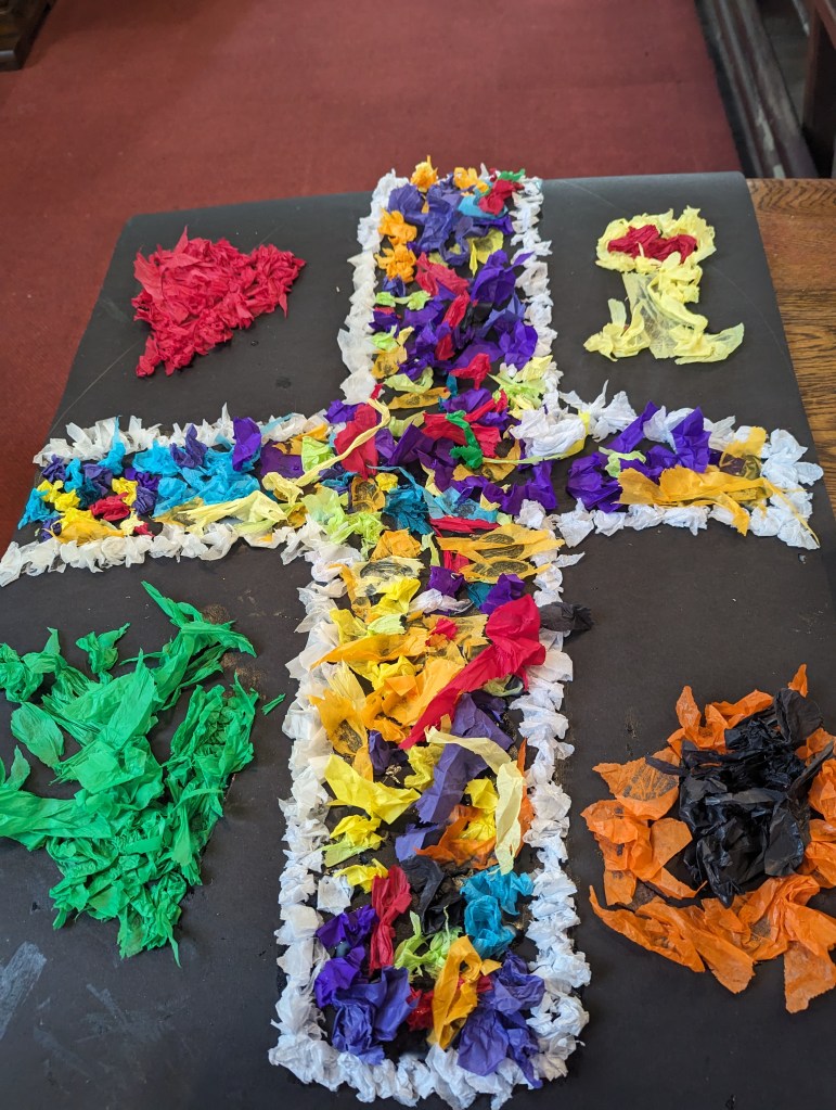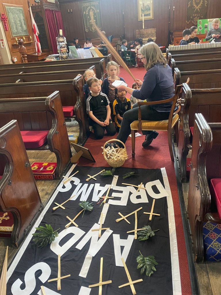 Children were offered a palm cross to keep if they wished and made a colouring in booklet and a mosaic poster to take back to class.