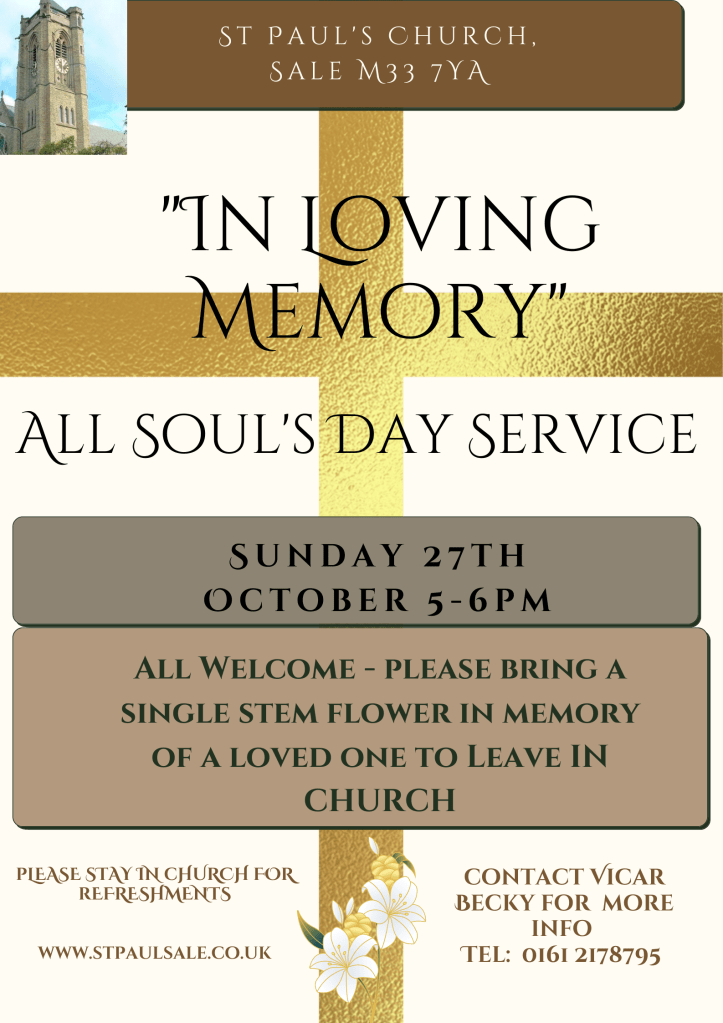 The posters below give details of event coming up at St Paul’s over the next few months begining on Oct 27th for the All Soul’s Day Service. The singing concert is on Sunday Nov 3rd from 2:00pm to 3:30pm.