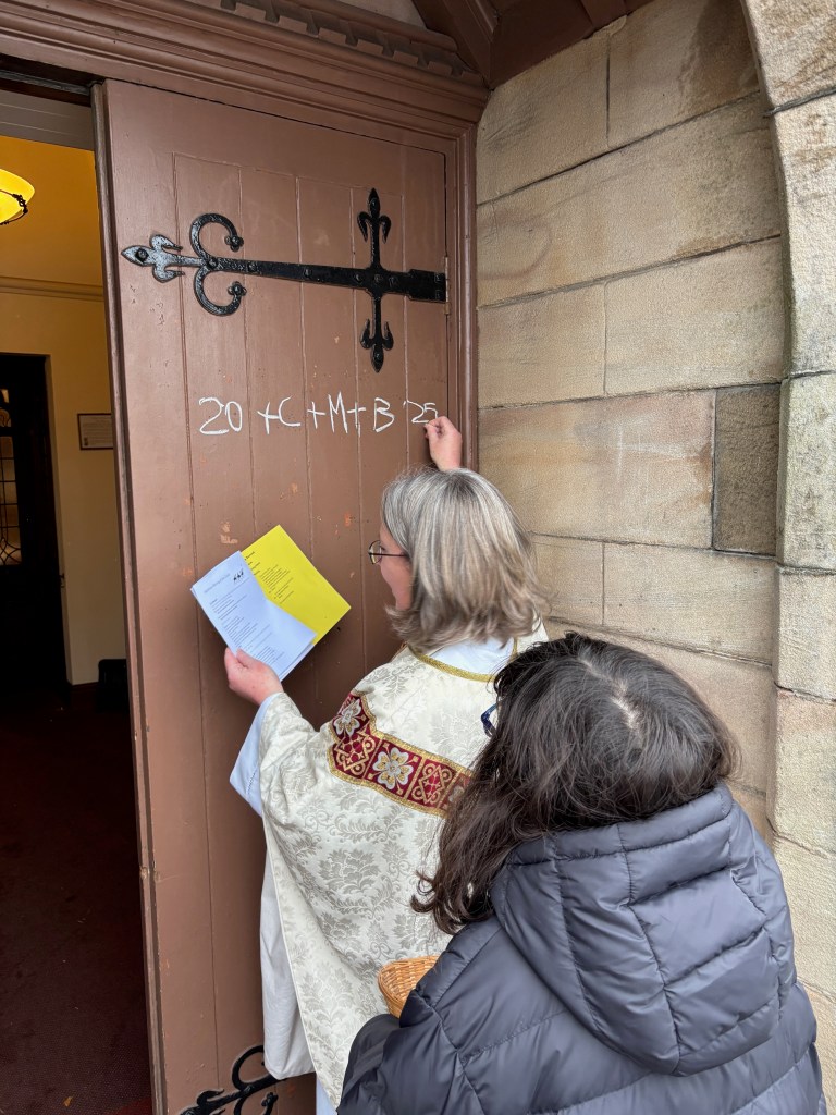 At the end of the service the Vicar blessed some pieces of chalk and then went outside to chalk the Epiphany Blessing, 20+C+M+B+25, on the Porch Door as shown in the photo below. The letters denote the initials of the Three Wise Men with 20 and 25 denoting the New Year.