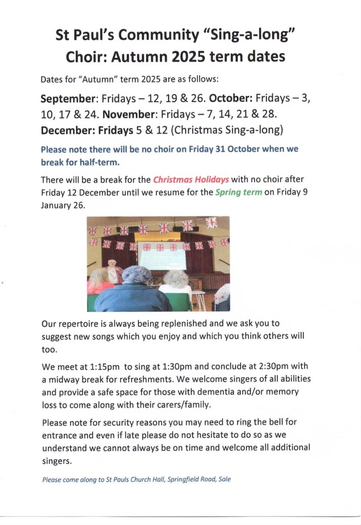 Community Choir Autumn Season Dates September 8, 2025 The dates for the Community Choir Autumn Season are shown below : Share this: Click to share on X (Opens in new window) X Click to share on Facebook (Opens in new window) Facebook Click to email a link to a friend (Opens in new window) Email Click to share on Pinterest (Opens in new window) Pinterest Click to print (Opens in new window) Print