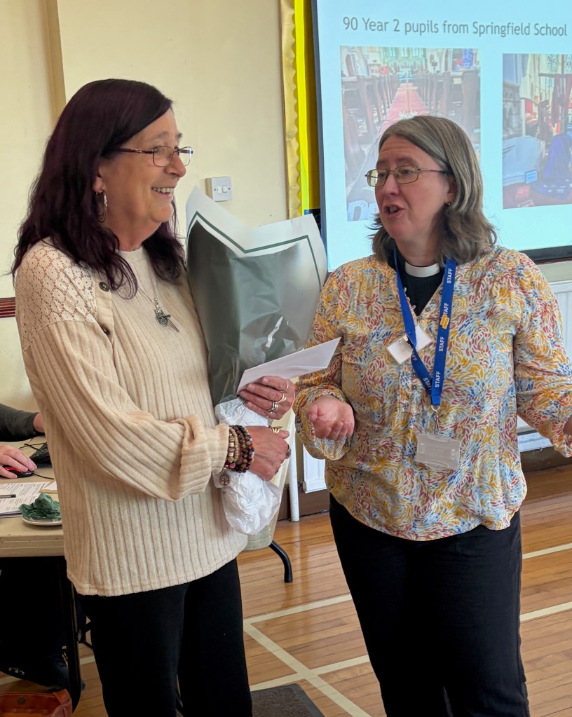 At the AGM after the Sunday service on April 26th a presentation was made to our retiring Church Warden Yvonne. The photo below shows Yvonne receiving the gifts from Becky.