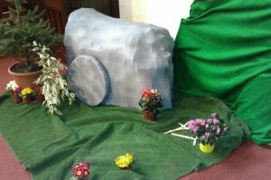 On Easter Sunday the Easter Garden showed the stone rolled away from the tomb, the Easter Cross was decorated during the service and afterwards the Easter Bunny appeared, giving hugs and eggs to young and old alike. The photos below and at right were taken during the day.