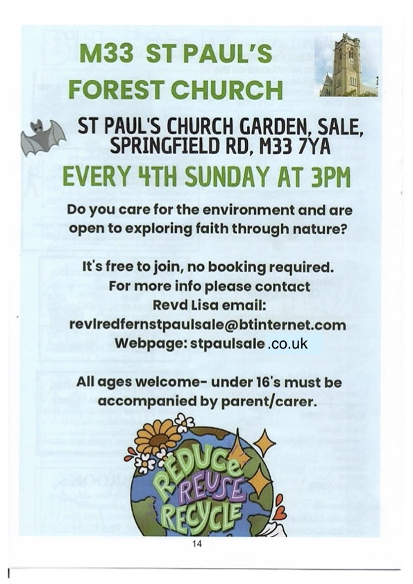 No need to book, just turn up or contact Laura in church /clergy for more information – revbmathewstpaulsale@gmail.com