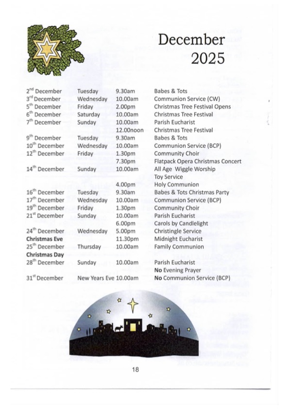 2nd Sunday: 10am All-Age Worship with Wiggle the Bible bookworm, 6pm Said Holy Communion